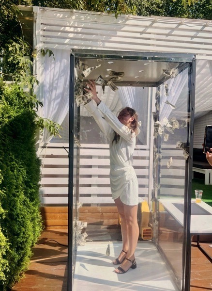 Первый этап лакшери-развлечений начинается с захватывающего аттракциона «Денежная кабина», который идеально вписывается в концепцию развлечения на вечеринку Гэтсби. Внутри прозрачной кабины в потоке воздуха кружатся фан-доллары, создавая настоящий денежный вихрь — символ богатства и изобилия.
