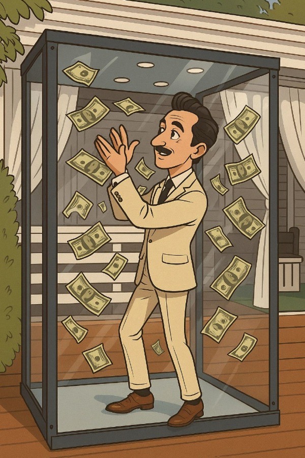 Развлечения на вечеринку Гэтсби несут глубокий символический смысл. Денежный поток в кабине — это метафора изобилия и легкости, с которой деньги приходят к тем, кто готов их ловить. Здесь нет труда в привычном понимании — есть только смелость, ловкость и готовность рискнуть.
